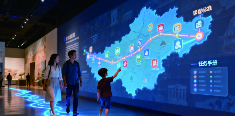 主题研学任务包:结合课程标准,设计馆内探索路线、任务手册与交互功能。